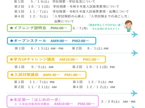 【入試情報】JHS☆令和8年度入試イベント年間予定