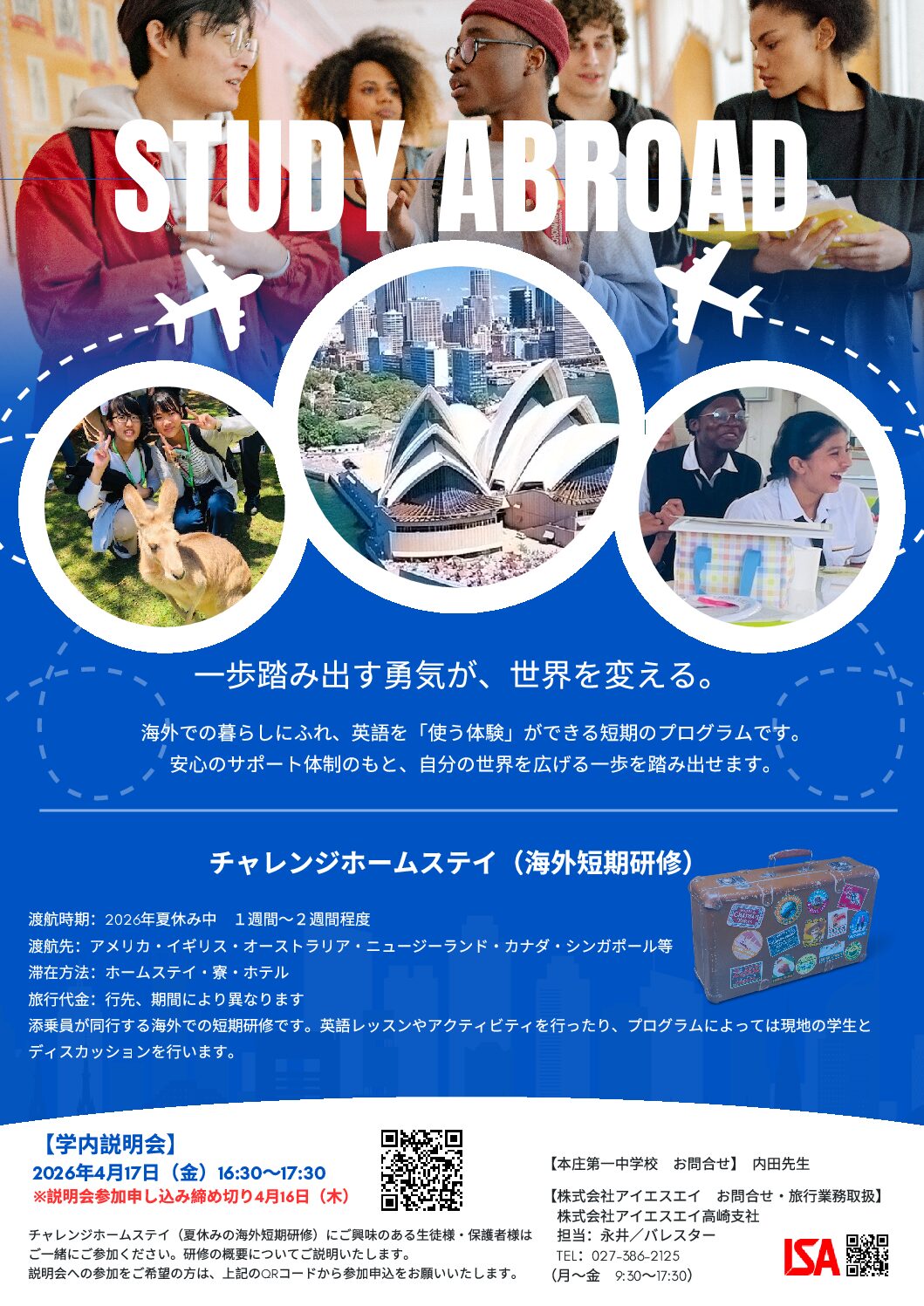 在校生の学校生活の様子と併せて最新情報をご確認下さるようお願いいたします。 ☟本庄第一中学校令和8年度第1回学校説明会お申込みはコチラから