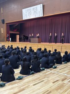 3/19(木)第3学期終業式・離任式・壮行会を行いました。