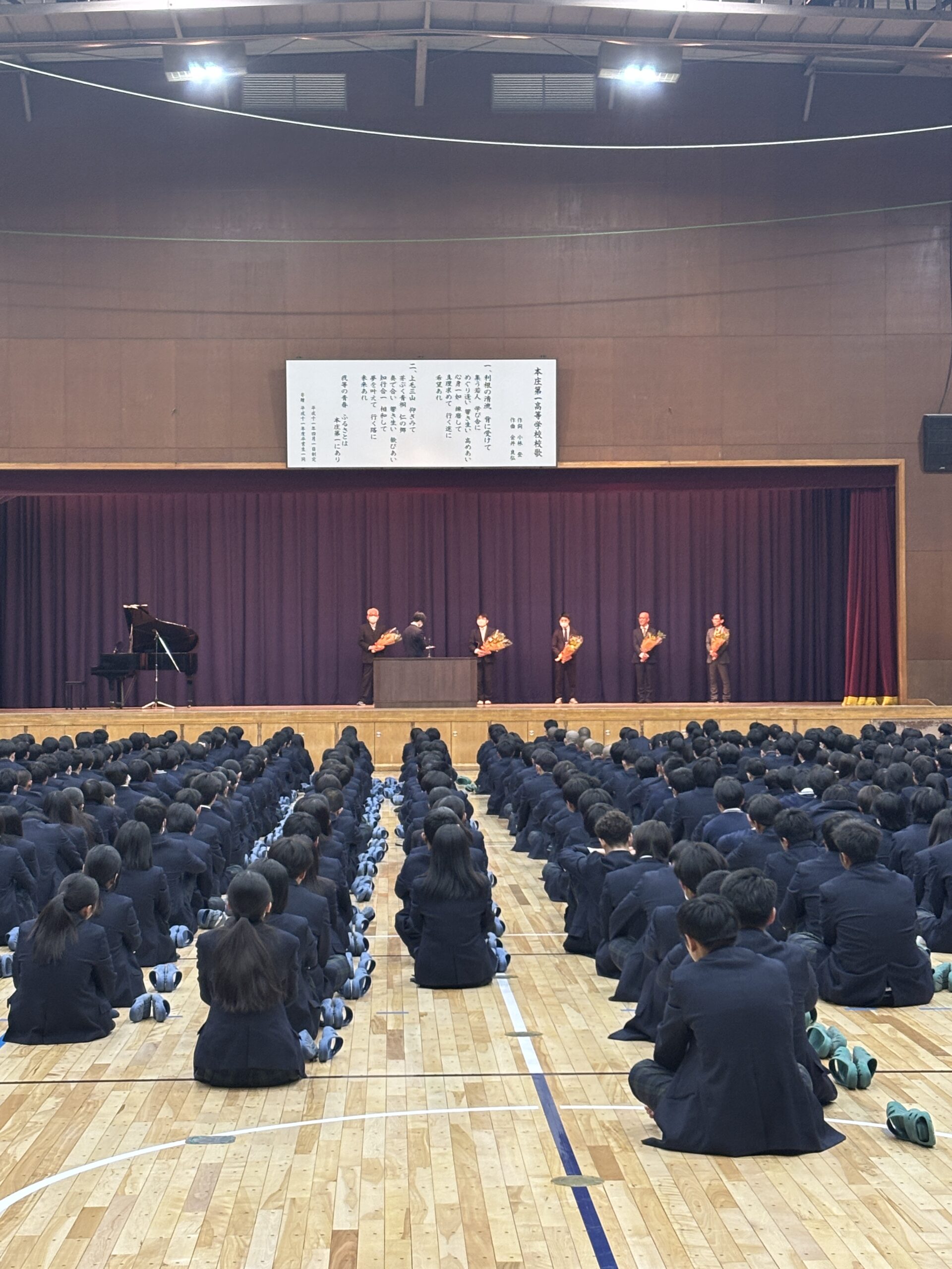 3/19(木)第3学期終業式・離任式・壮行会を行いました。