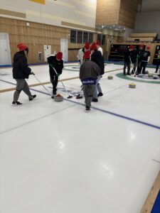 初めて挑戦するカーリングに生徒達は楽しんでいる様子でした。
