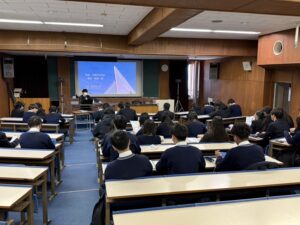 午前は自分自身で興味、関心のある学校の話を聞き、午後は、進路本部主任の中先生より、