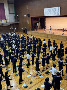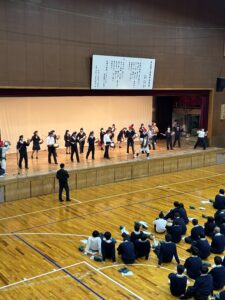 沖縄に行ったときに踊れるよう、生徒達も一緒に踊りました。