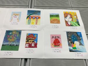 多目的運動場壁面に展示された美術作品・書道作品をご来場者をはじめドームを利用される皆様にご好評いただいております。