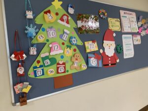 *写真はクリスマスシーズンを迎えた本庄第一中学校。ご来校の折には、校内の様々なクリスマスディスプレイをお楽しみいただけます。