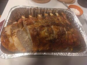 メインはボリュームのあるローストポーク、デザートのクリスマスケーキは家族の手作り✨